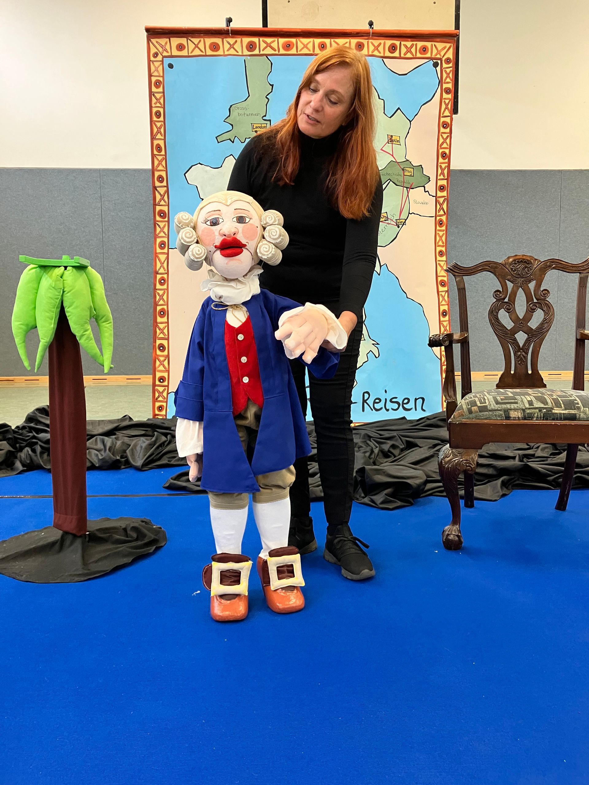 Die kleine Mozartpuppe erzählt dabei zunächst aus ihrer Kindheit, den vielen Reisen- kurzum wie es sich so lebt-als Wunderkind.