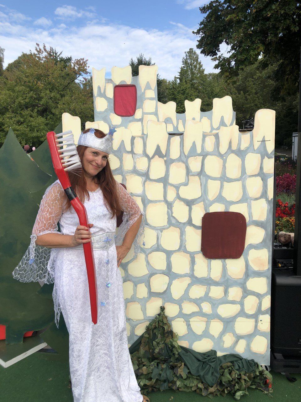 Da sie nichts mehr fürchtet, als dass die Bakterien ihre Wackelzahnburg überfallen könnten, macht sie den neuen Zahn mit der makellosen Zahnschmelzrüstung zu ihrem Ritter!